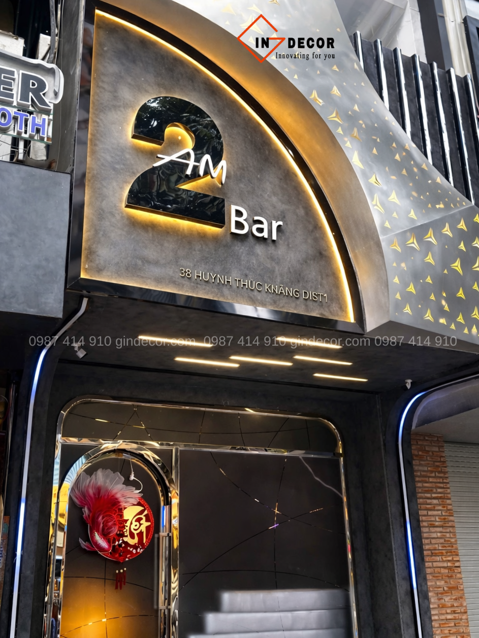 Tại Bar 2AM, sự kết hợp giữa ánh sáng vàng – lạnh và bề mặt bê tông đã tạo nên một không gian vừa sang trọng, vừa đậm chất nightlife.