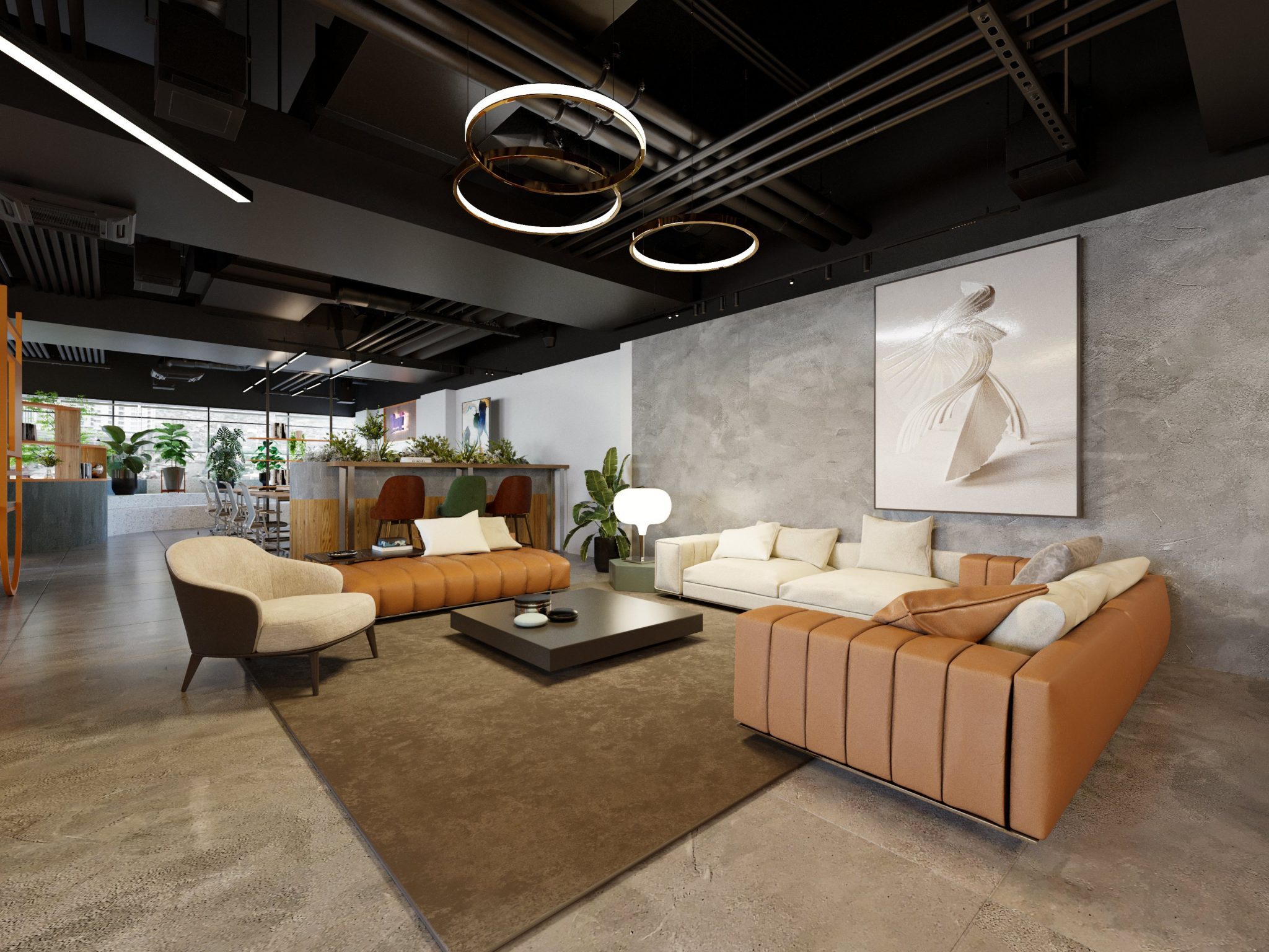 Phong cách bê tông mộc kết hợp với ánh sáng phù hợp mang đến sự sang trọng nhẹ nhàng và tinh tế. Không cần vật liệu đắt đỏ, ưu điểm sơn hiệu ứng bê tông vẫn giúp không gian nổi bật theo cách riêng biệt.