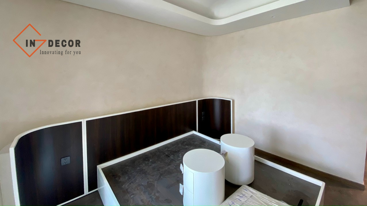 Ngoài chất lượng sản phẩm, quy trình thi công sơn hiệu ứng tại Gindecor cũng được kiểm soát chặt chẽ. Đội ngũ kỹ thuật viên được đào tạo bài bản, đảm bảo từng lớp sơn được xử lý đúng kỹ thuật, mang lại bề mặt hoàn thiện sắc nét và đồng đều.